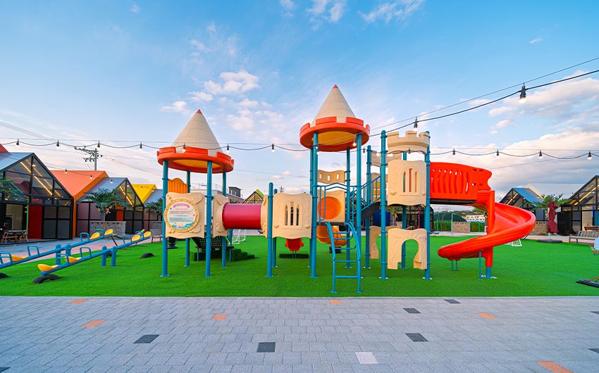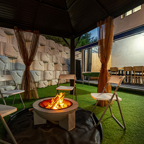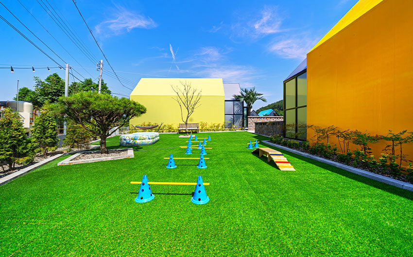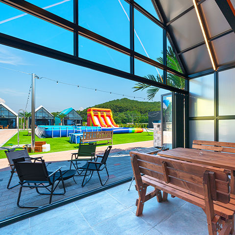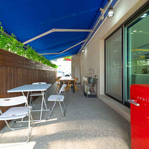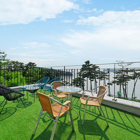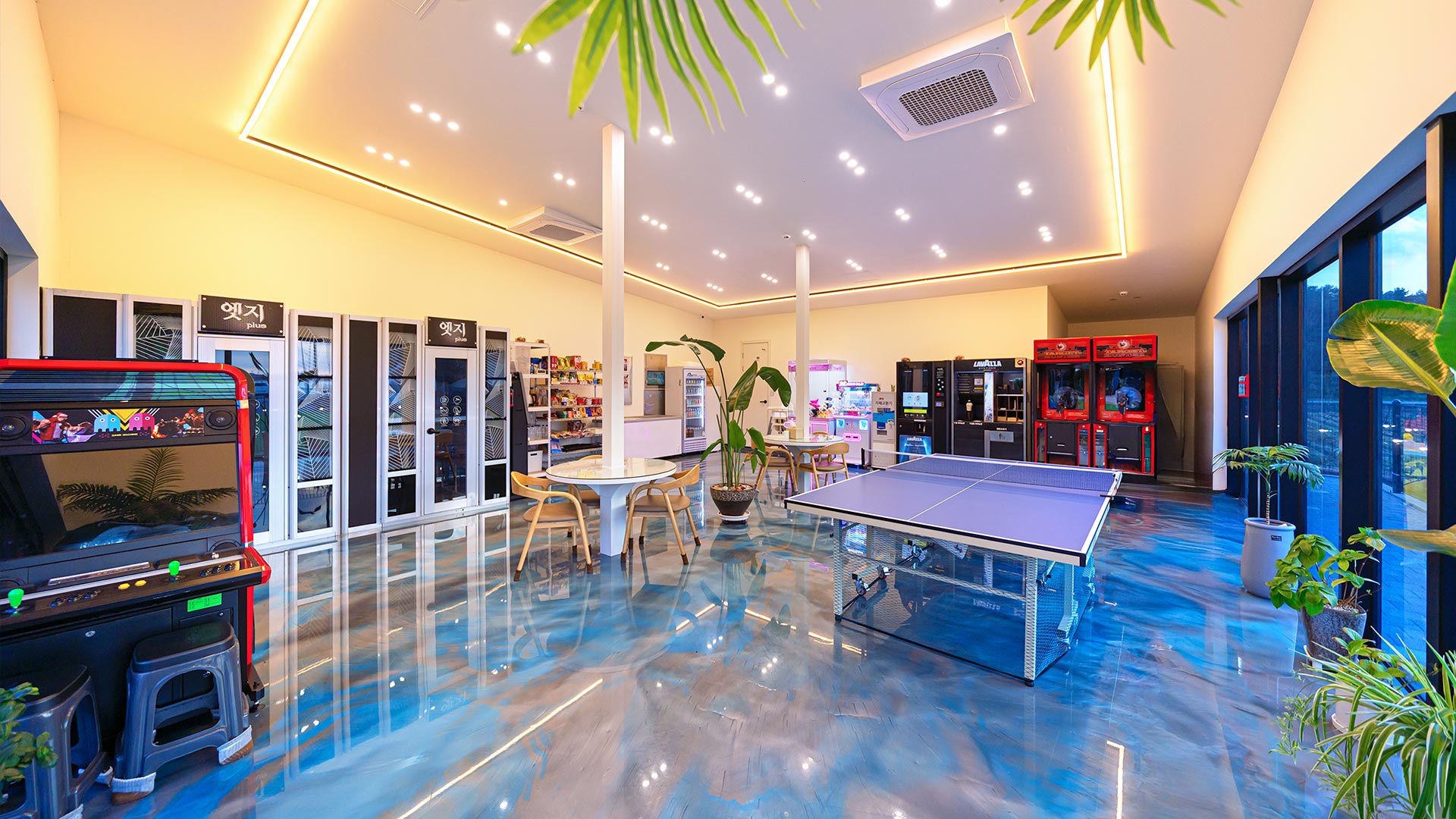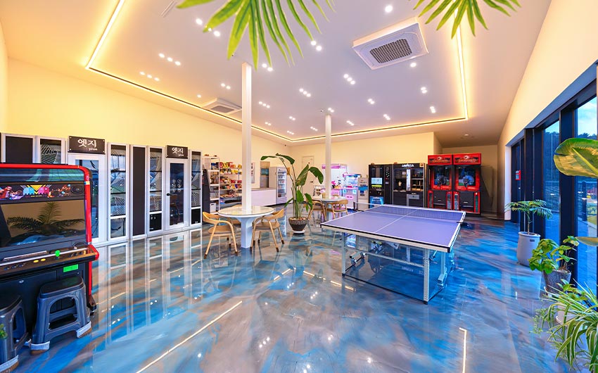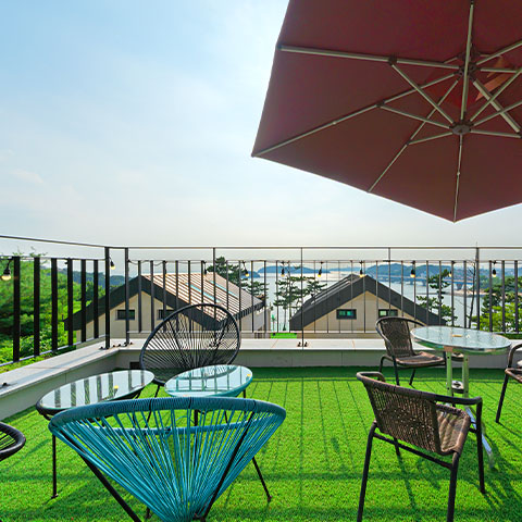 낮엔 매점, 족구장, 탁구장, 포토존 테라스 등