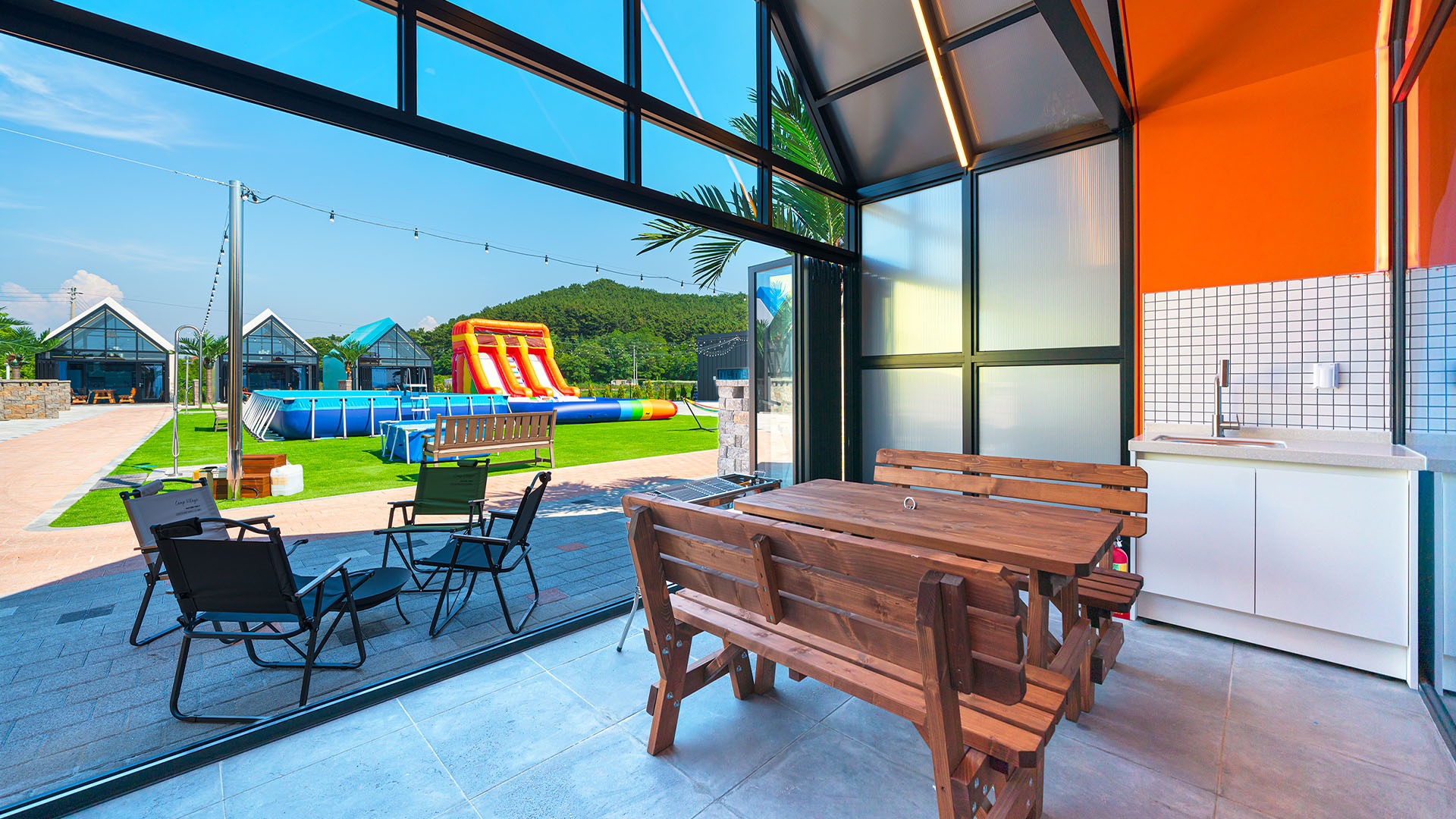 가온글램 야외 수영장에서 하루를 마무리하세요.