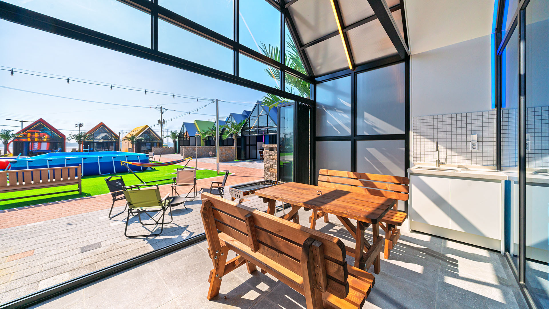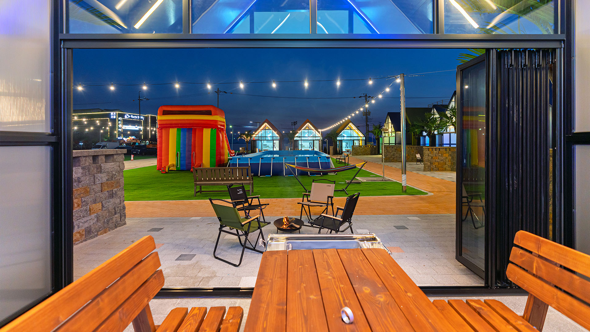 가온글램 야외 수영장에서 하루를 마무리하세요.