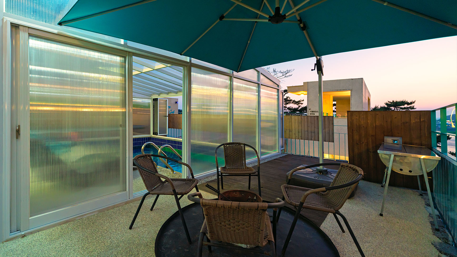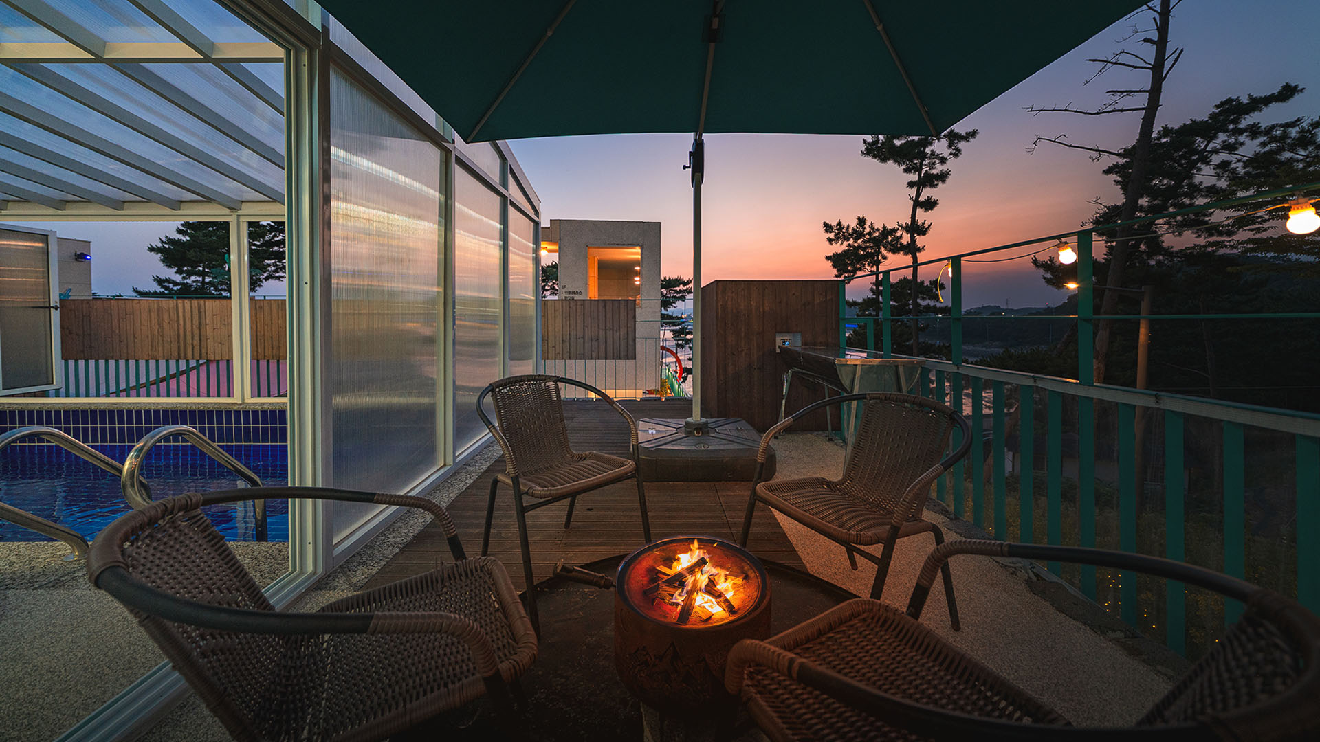 별도로 마련된 바비큐 그릴과 불멍 공간은 프라이빗 수영장과
