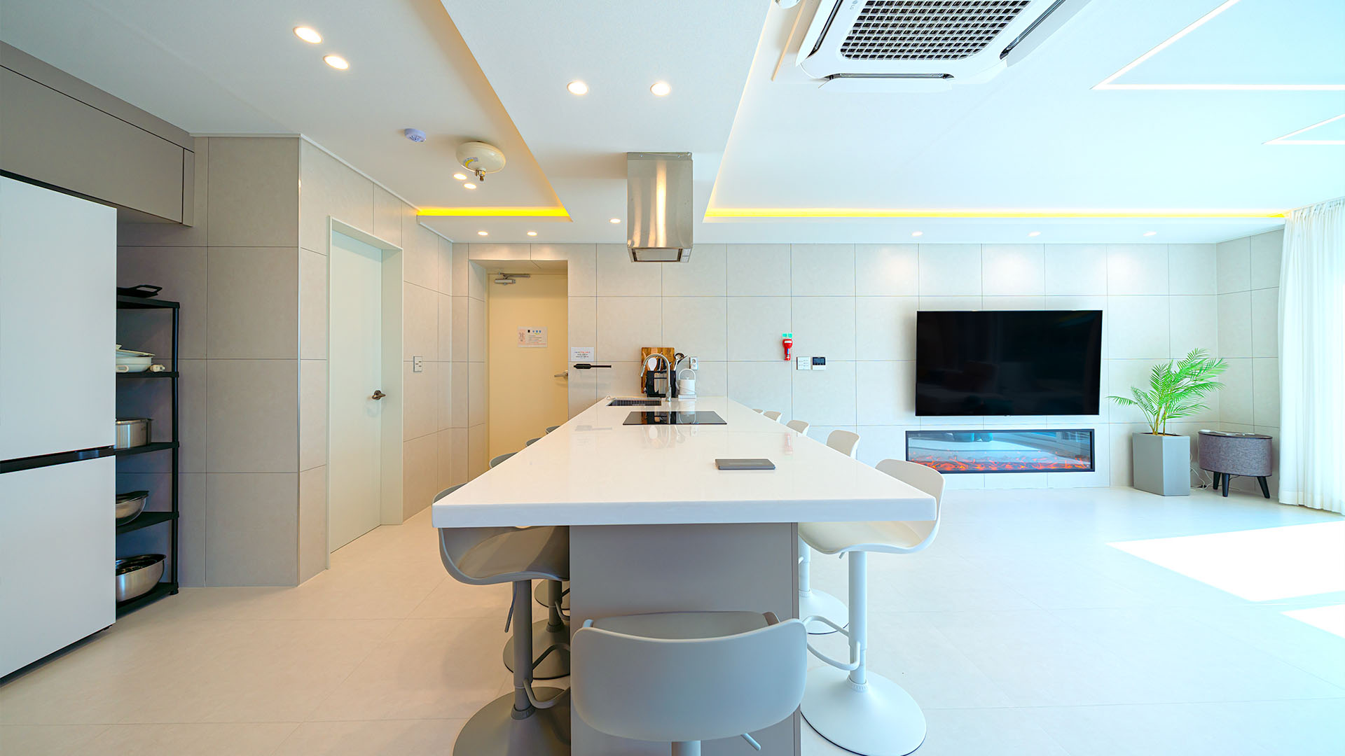 테이블 내에 매립형 전기그릴 2대를 갖추어 언제든지 쾌적하고