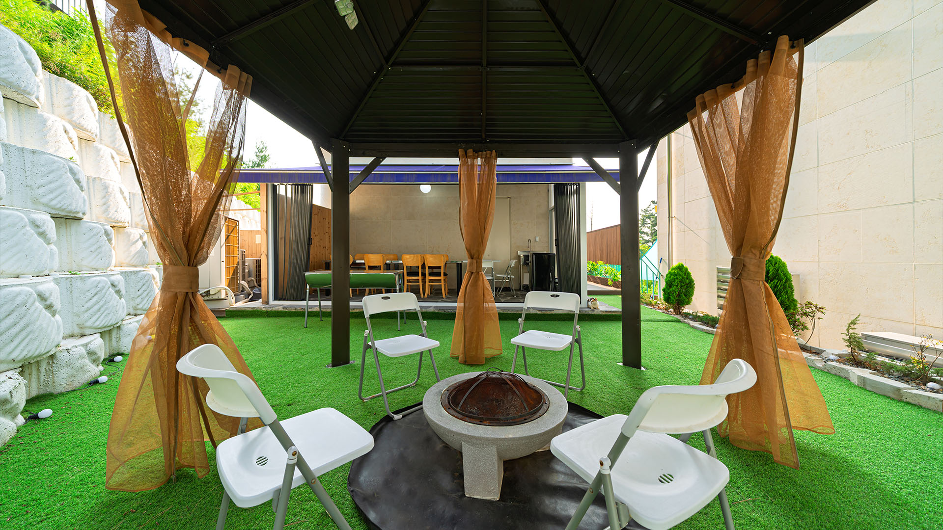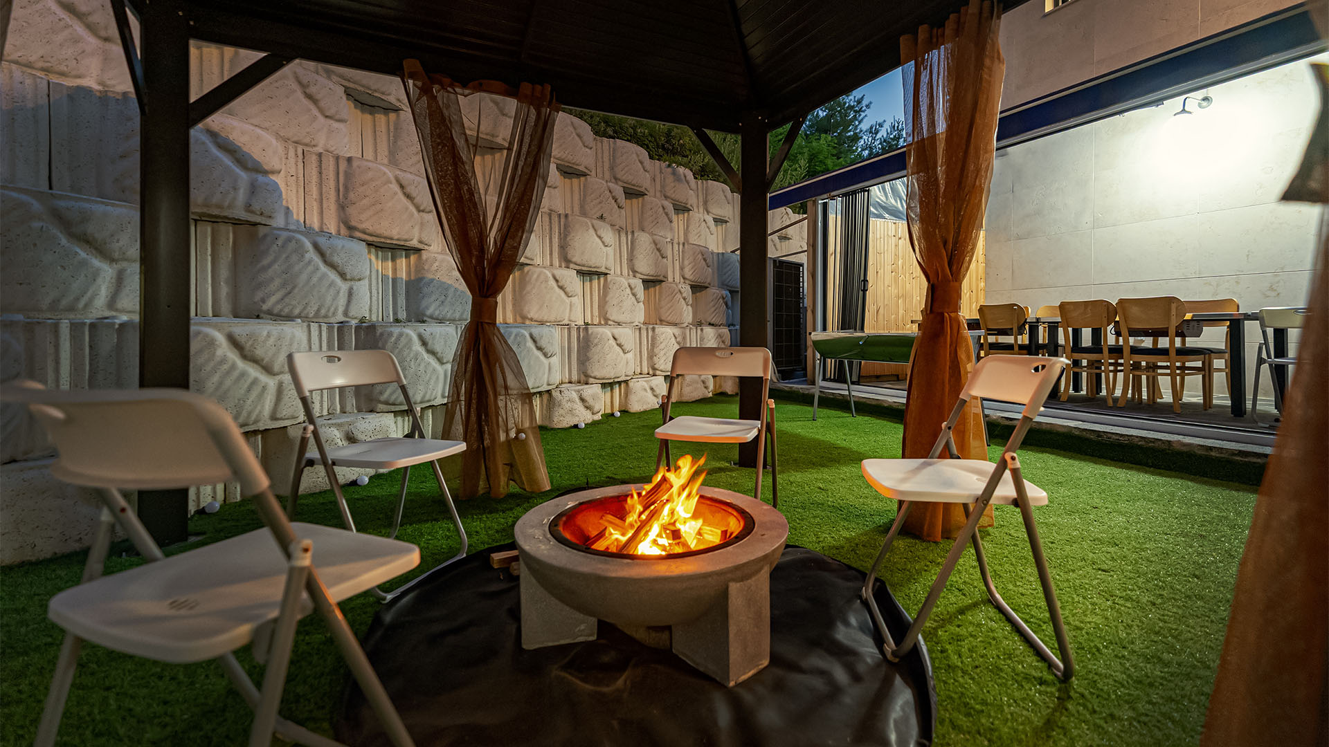 별도로 마련된 바비큐 그릴과 불멍 공간은 프라이빗 수영장과