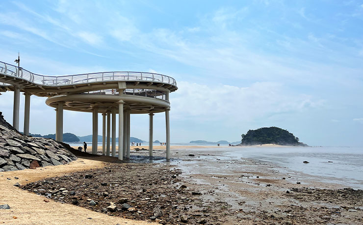 탄도에서 1.2km 떨어진 곳에 작은 무인도 누에섬이 있다. 탄도와 누에섬 사이에는 하루 두 번 썰물 때 4시간씩 바닷길이 열리기 때문에 1km 거리를 걸어서 들어갈 수 있다. 이때 바다가 갈라지면서 잠시 생기는 길을 탄도바닷길이라고 부른다. 탄도바닷길을 통해 누에섬으로 이동하면 바다 한가운데 우뚝 솟은 등대 전망대를 볼 수 있다. 전망대에 오르면 바다 경치와 함께 탄도항, 대부도 옆 제부도도 볼 수 있다. 등대 전망대 내부 1층에는 등대 전망대, 탄도항, 대부도 풍경 관련 사진들이 전시되어 있으며, 2층은 실내전망대, 3층은 망원경이 있는 야외전망대이다.